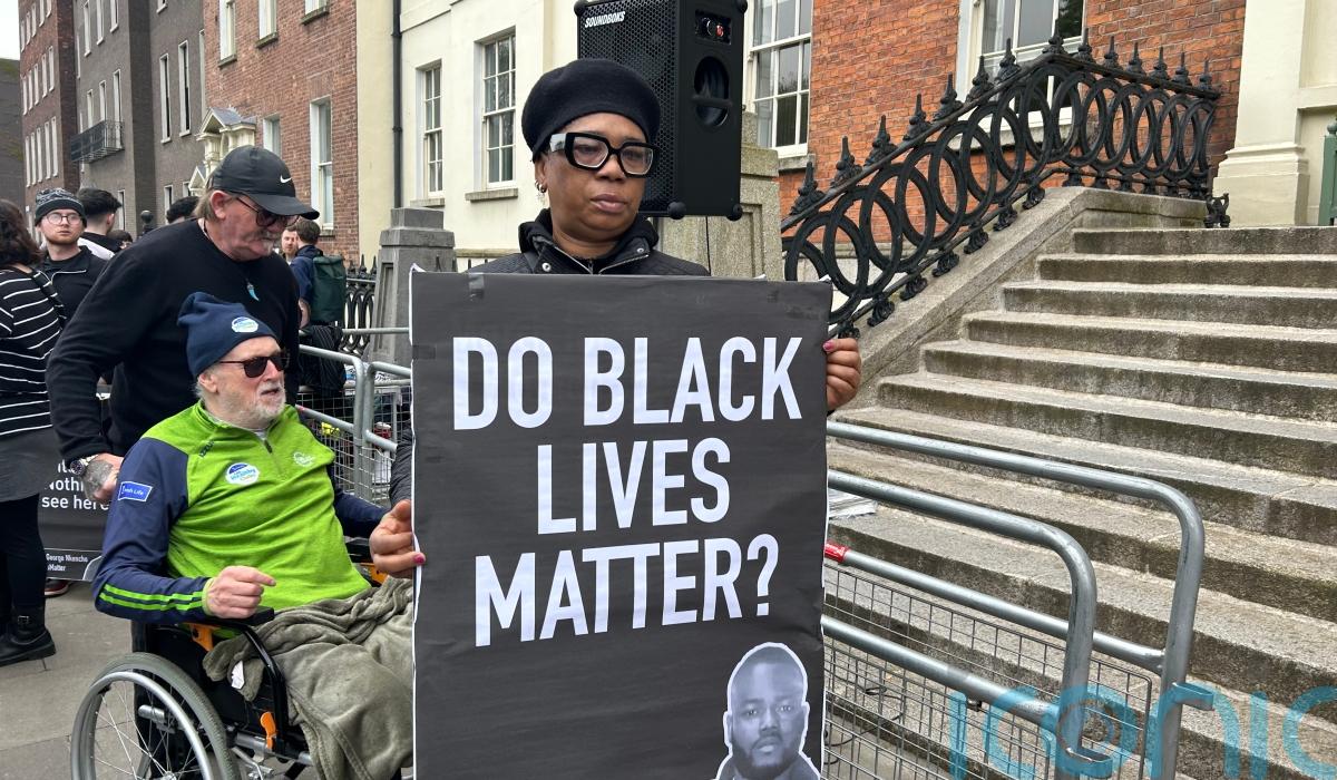 About 40 people gathered and held signs with slogans such as “Justice for George Nkencho”, “Gardai can’t be exempt from trial” and “travesty of justice”.