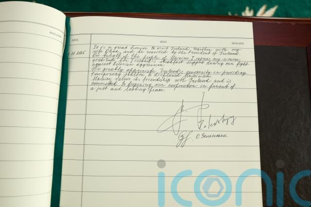The cavalcade surrounded the Ukrainian president as he travelled to meet his Irish counterpart at Aras an Uachtarain, where he signed the visitors’ book.