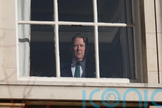 Minister for Transport Darragh O’Brien peered from an upper floor window to get a glimpse of proceedings.