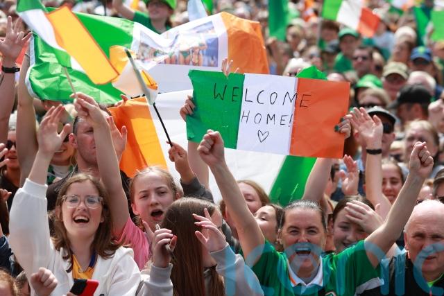 Fans wearing Ireland jerseys and other green clothing shouted and cheered as the athletes took to the stage.